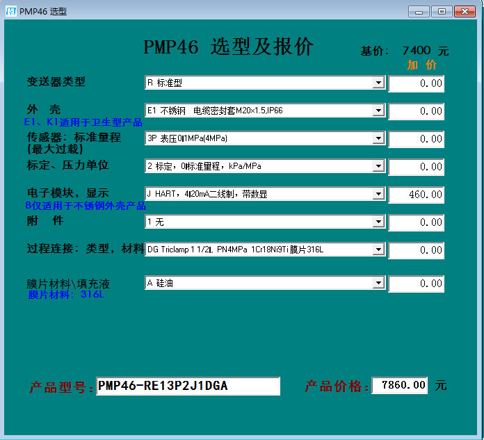 PMP46和PMP48是PMP41加装焊接密封隔膜结构而形成的延伸产品,PMP46/PMP48的测量精度为±0.3%FS。除温度影响指标不同外,其它电气性能和技术参数与PMP41、PMP45基本相同。PMP46为内螺纹锁母压旋式和Triclamp接口式结构。PMP48包含外螺纹连接、平法兰连接以及延伸平法兰连接等各种过程连接形式